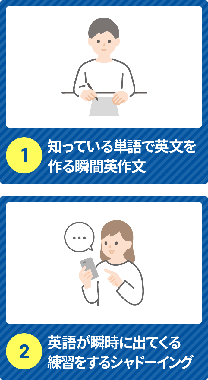 つまり、次の2つを短期集中で練習すれば、誰でも英語を話せるようになるのです。